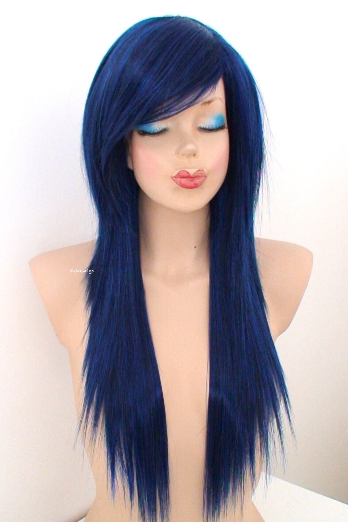 Black Blue Wig Emo Wig 28 Straight Layered Long Side Etsy