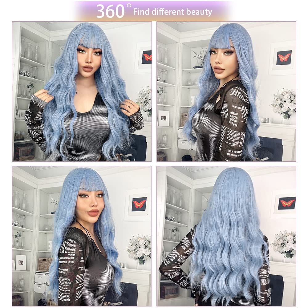 Amazon Com Mupul Sky Blue Body Wave Synthetic Wigs For Women Light Blue 28inch Long Curly Hair For Cosplay Girls And Women Halloween Party Or Daily Use Wig Beauty Personal