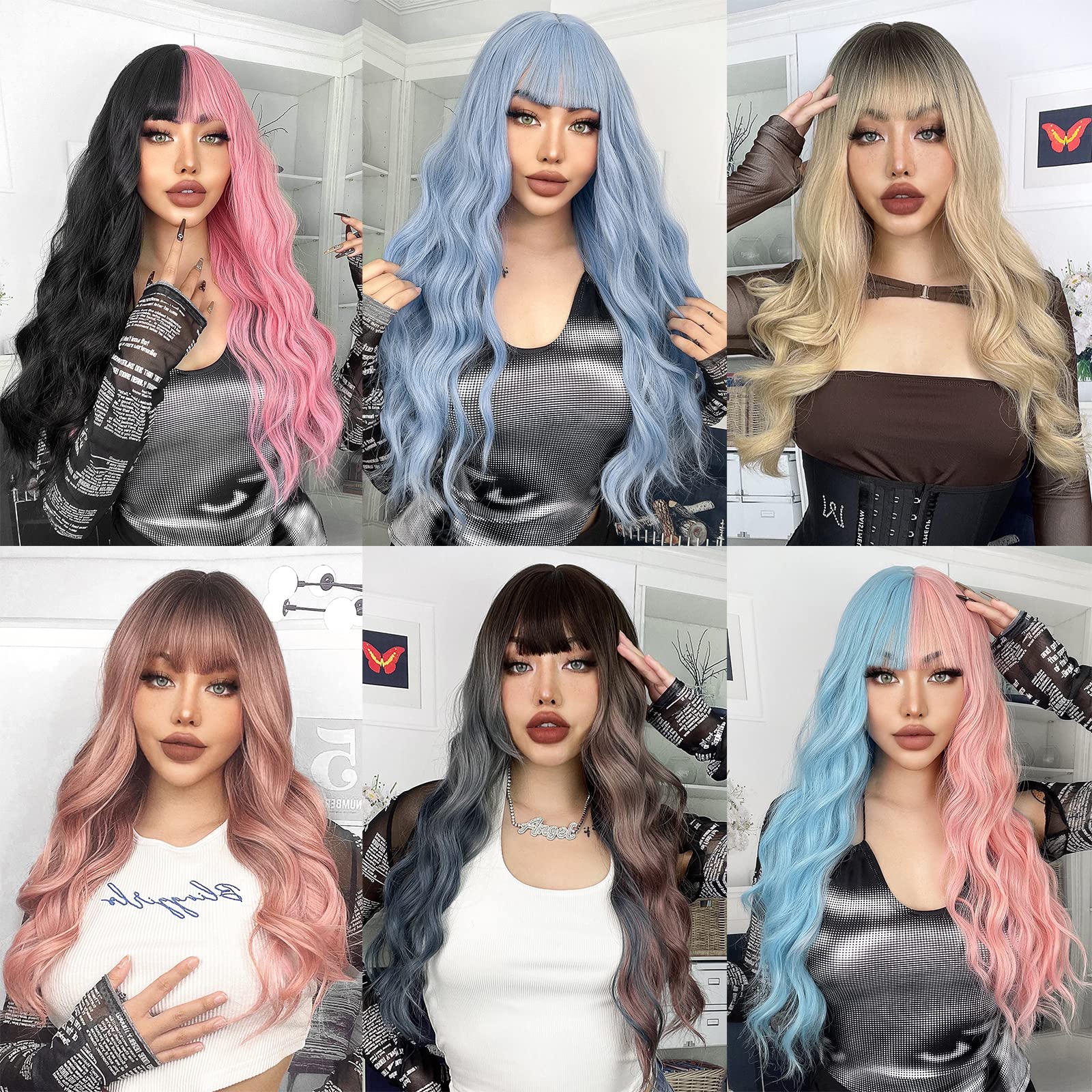 Amazon Com Incohair 28 Inches Mixed Blue Wigs Long Curly Wavy Fluffy Wig With Bangs Women Girls Synthetic Party Cosplay Cosutme Hair Wigs Mixed Blue Automotive